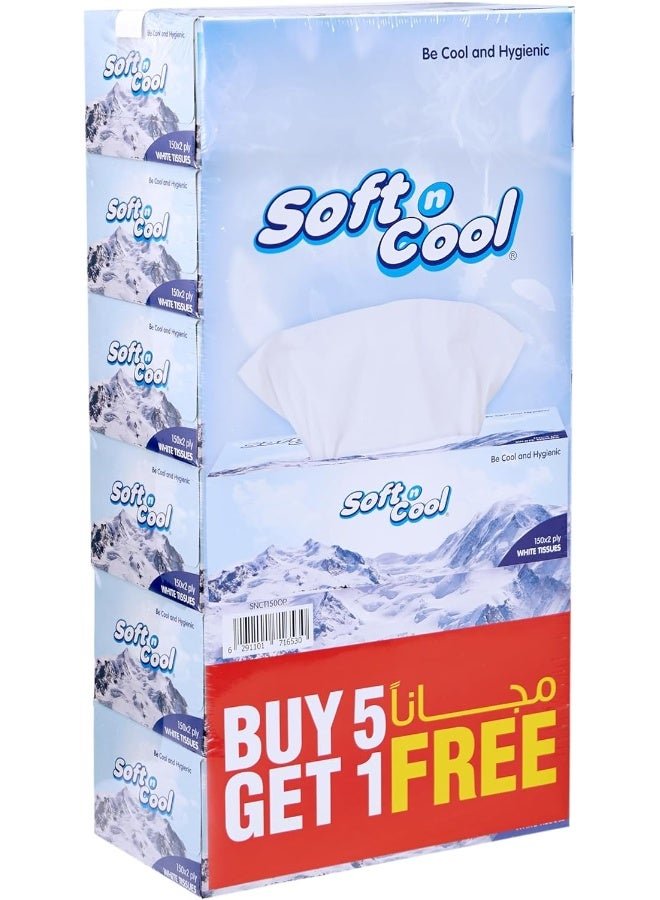 Soft N Cool Highly Absorbent, Sterilized, Soft & Strong, Facial Tissue 150 Sheets 5 Box + 1 Box FREE