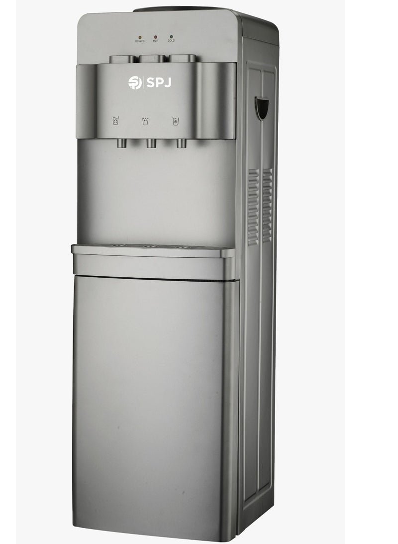 SPJ 12.5L Top Load Water Dispenser with Storage Cabinet, 3 Taps Hot Cold Normal, Floor Standing Water Cooler, Child Safety Lock, Antibacterial Body, Grey