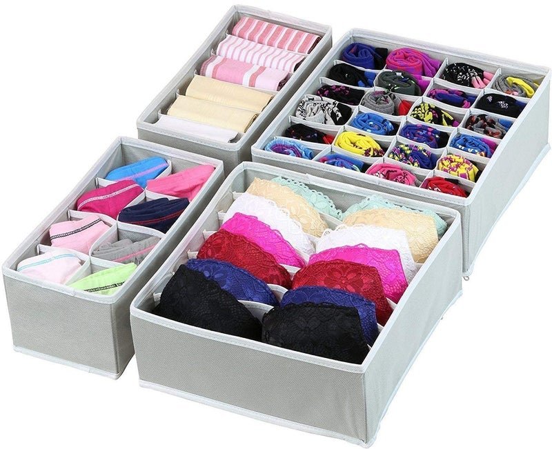 Styleys Non-Woven Foldable Storage Box Drawer Organizer Wardrobe For Clothes, Lingerie, Innerwear, Underwear, Bra, Socks, Tie, Etc. (Set Of 4 – Grey, S1014Clothing)
