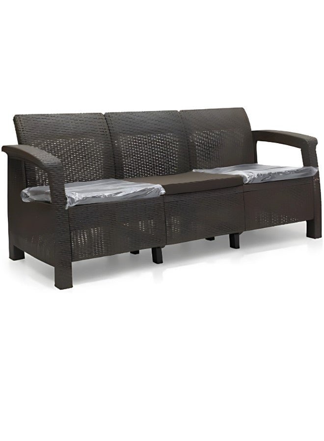 SULSHA 3 Seater Balcony Sofa with Cushion Indoor & Outdoor Furniture Patio Chair Three Seater Perfect for Gardens Poolside Cafes Restaurants, Rattan sofa and Terraces Weathered Brown