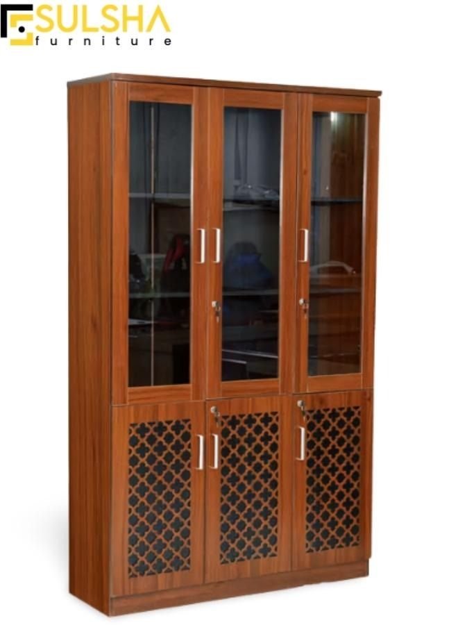 SULSHA Modern 6 Door Wooden File CABINET & Book Shelf Glass Door