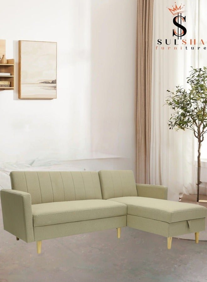 Sulsha New High Quality L Shape Corner Sofa Light Brown, Lounge Area Sofa, Sofa Bed With Chaise Fabric With Wooden Legs