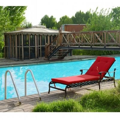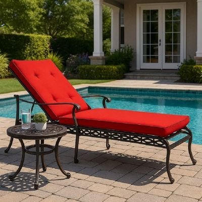 Sun lounger- Philadelphia style-190×70×54CM-Aluminum-Black frame- Red cushion