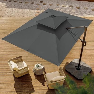 Sunshade Aluminium Garden Umbrella with Rotating Handle Stylish Outdoor Patio Decor and UV-Resistant Canopy 3 x 4 Meter (Grey)