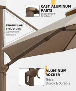 New Almira Umbrella with Cross Base – Beige – 3×3 M – With 1-Year Warranty