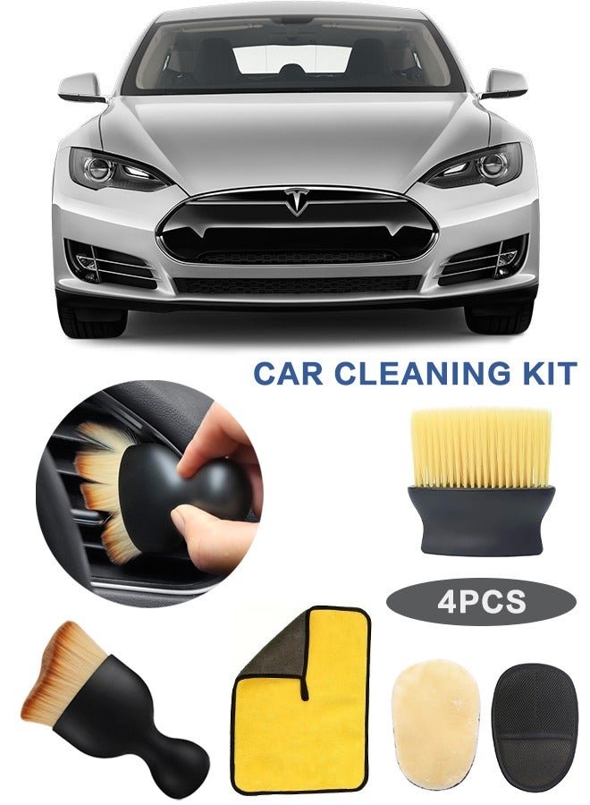 Sweet Life Car Detailing Brush Set Auto Interior Dust Brush and Microfiber Soft Fleece Car Wash Gloves for Cleaning Automotive Dashboard Air Conditioner Vents Leather Computer