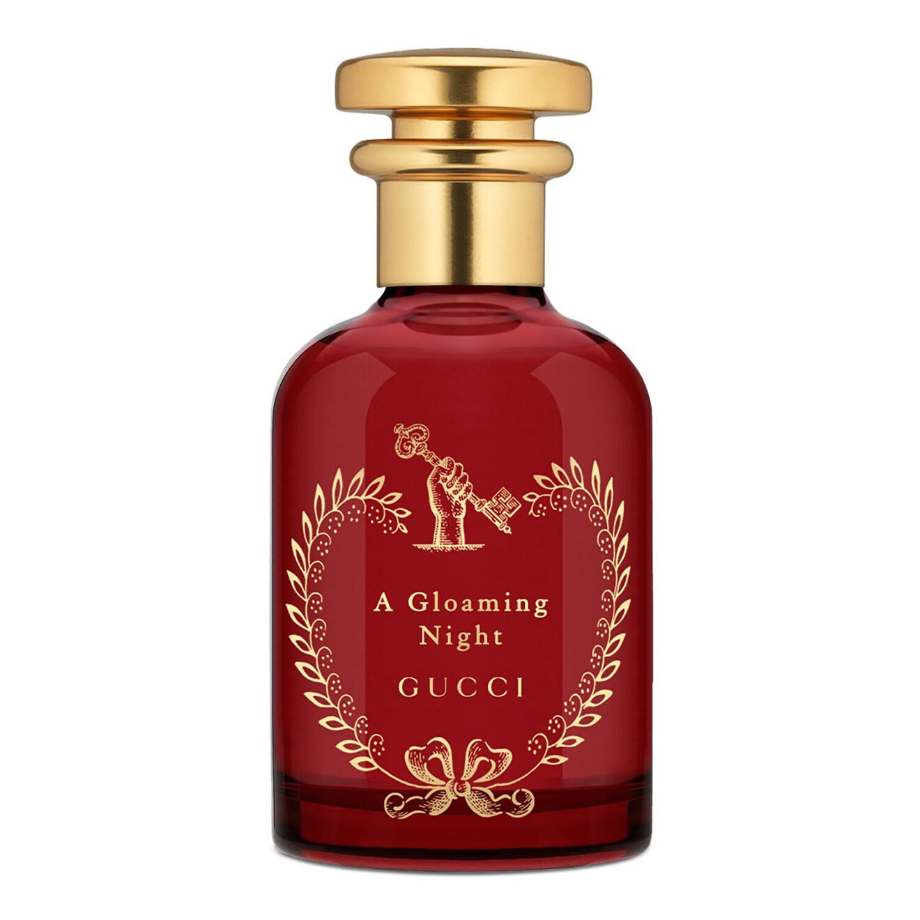 Encased in a transparent red bottle to reflect the warming, woody, and dry aroma. The bottle is adorned with a hand holding a key to unlock the secrets of the scent.