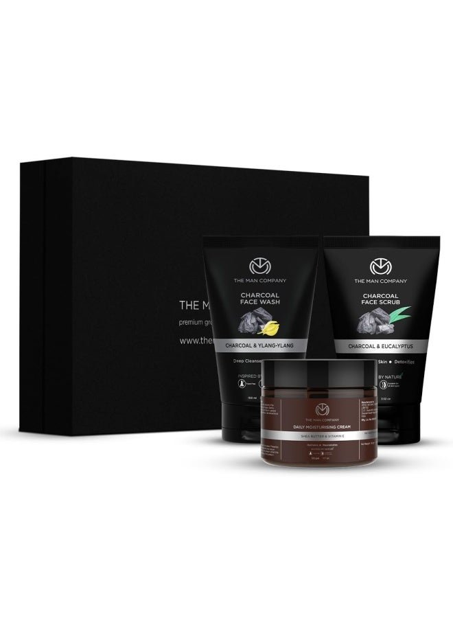 The Man Company De Tan Face Care Kit for Glowing & Moisturised Skin with Charcoal Face wash, Scrub & Moisturizing Cream – Set of 3
