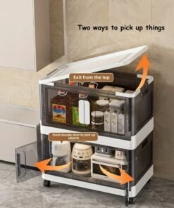 Toshionics 4 Tier Plastic Storage Cabinet – 50x32x113cm – Multi-Layer Foldable Portable Storage Bins with Rolling Wheels, Collapsible, Stackable Clothes Organizer with Magnetic Double-doors Acrylic Transparent Plastic Closet Quilt Organizer with Secure Lids and Lockable Casters Home Storage Box for Clothes, Kitchen, Pantries, Utensils, Cupboard for Toys, Snacks – Home Decor Organizer, Office Supplies, Bedroom, Bathroom Toiletries and Amenities Versatile Spacious Storage Rack- Available in Various Sizes and Layers