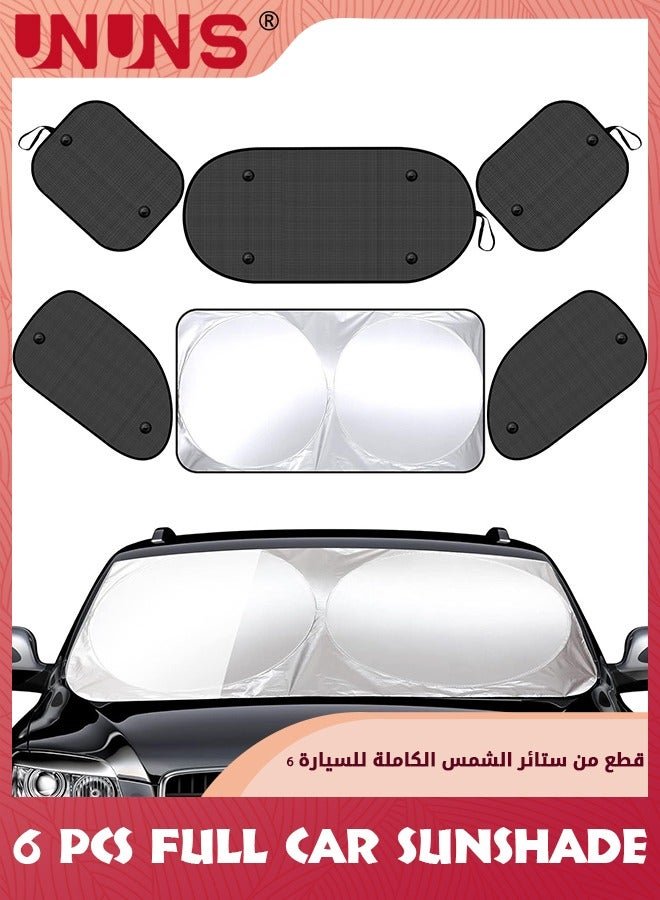 UNUNS Universal Car Window Shades Set,6 Pcs Auto Window Sunshades Privacy Curtains-Sun Visor Windshield Shade+4 Front Rear Side Window Shade Cling Sunshade,100% Block Light For Breastfeeding,Camping