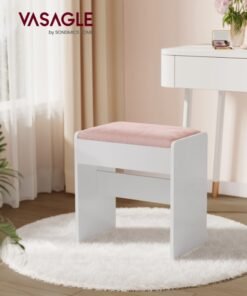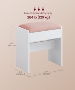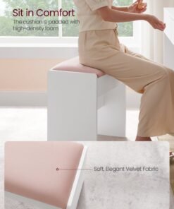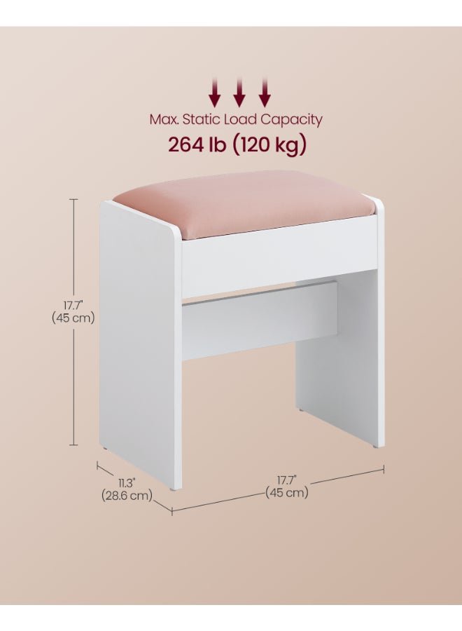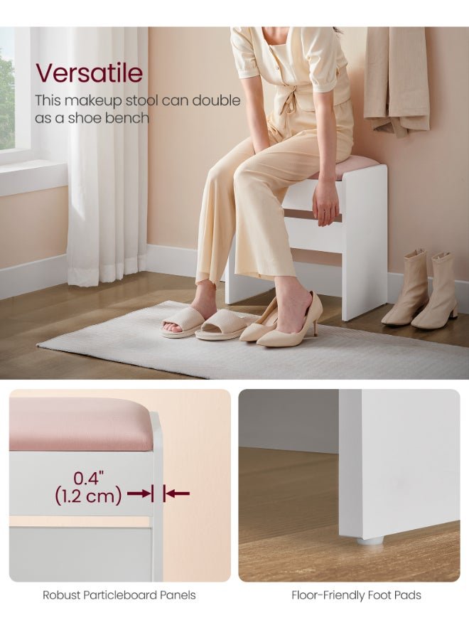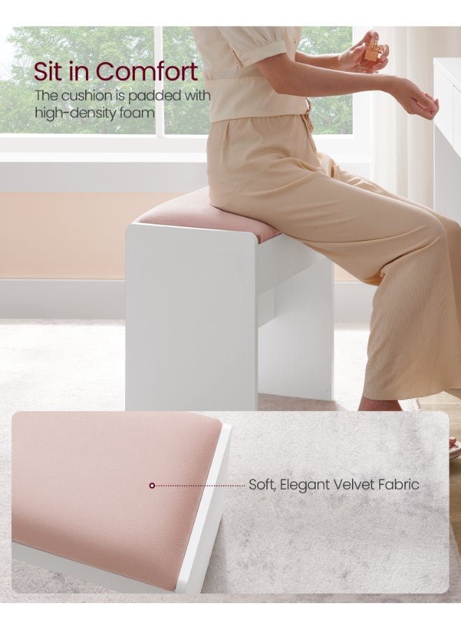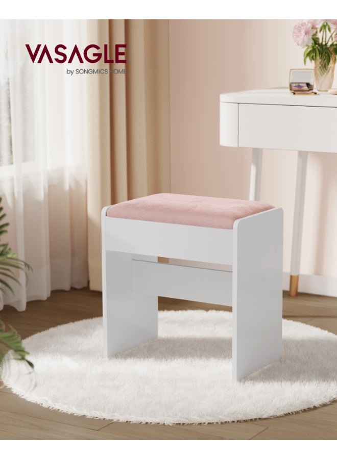 VASAGLE Dressing Table Stool, Upholstered Makeup Stool, Velvet Vanity Stool, Footrest with Anti-Slip Pads, for Dressing Room, Bedroom, Entryway, Matte White and Jelly Pink