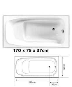 Vision inset seat bathtub – immerse in comfort with a tub featuring a built-in seat, perfectly sized at 170x75x37cm for a clear vision of relaxation