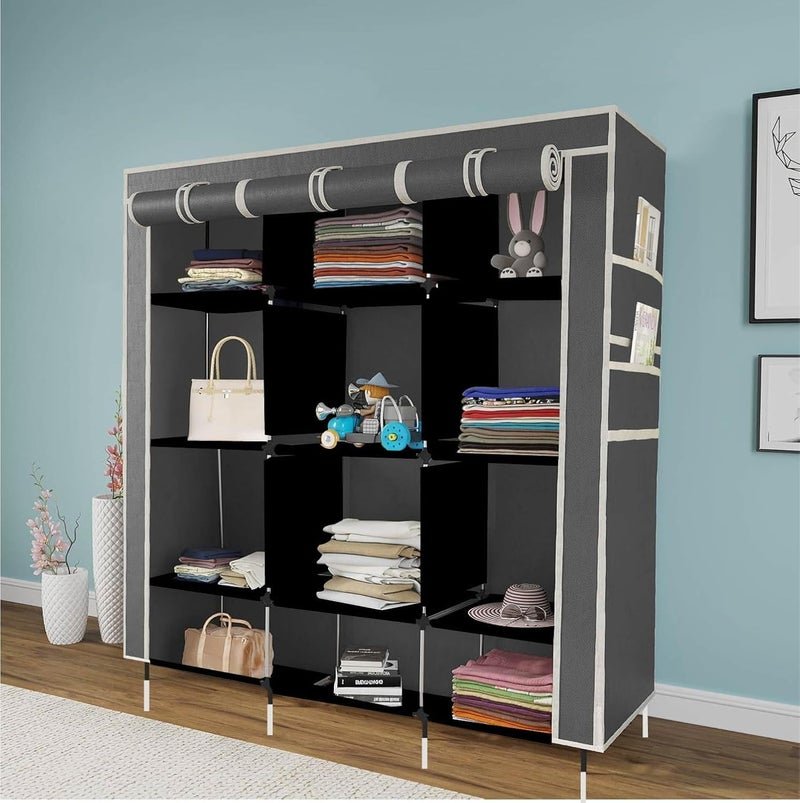 Whitecloud Transforming HOMES12-Shelf Collapsible Wardrobe | Foldable Fabric Almirah with Storage Racks & Organizer Shelves for Clothes | Grey (88350)