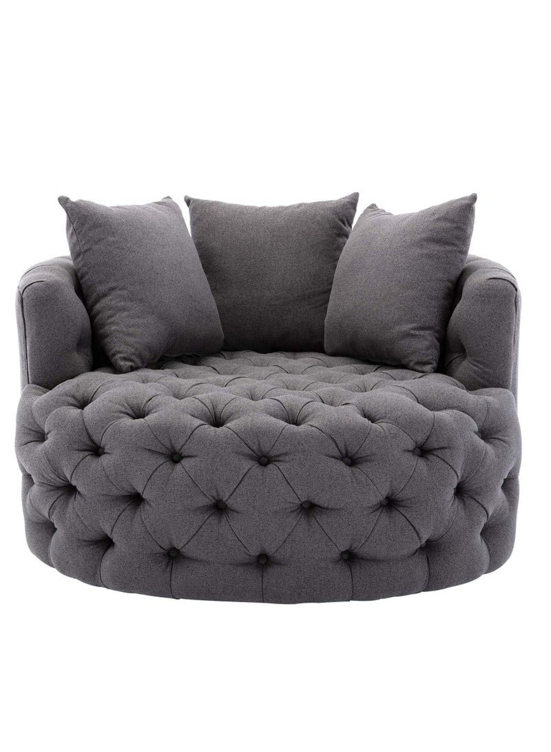 Wooden Twist Barrel Button Tufted Design Modern Round Sofa For Living Room with 3 Pillows ( Grey )