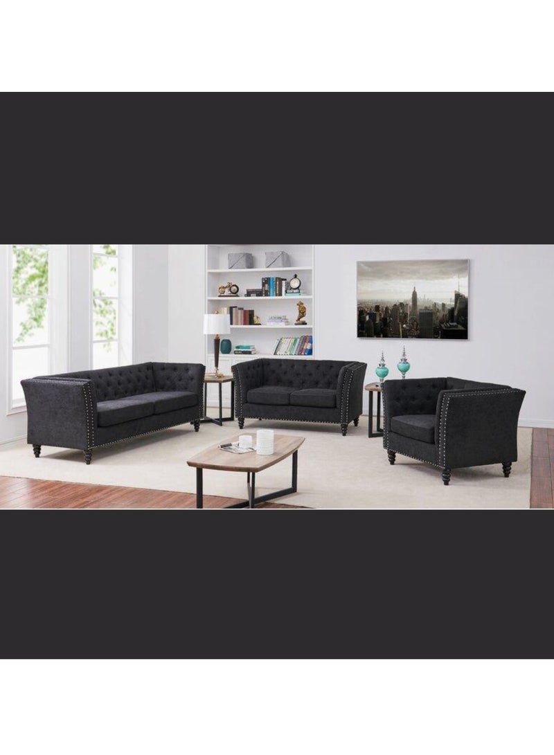 Wooden Twist Chesterfield Destro Premium Living Room Sofa Set Black