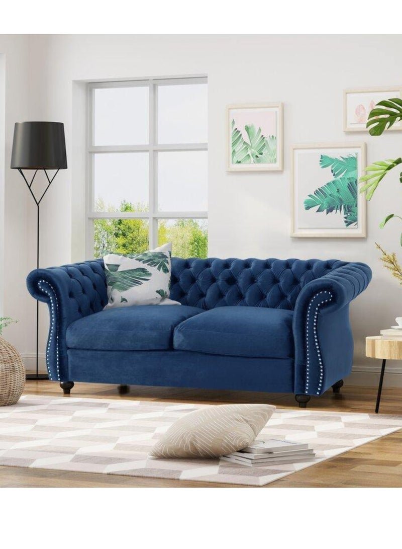 Wooden Twist Regal Premium Solid Wood Velvet Fabric Flared Arm Loveseat 2 Seater Sofa ( Blue )