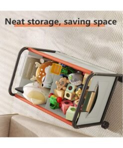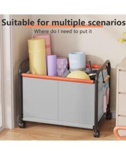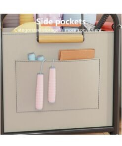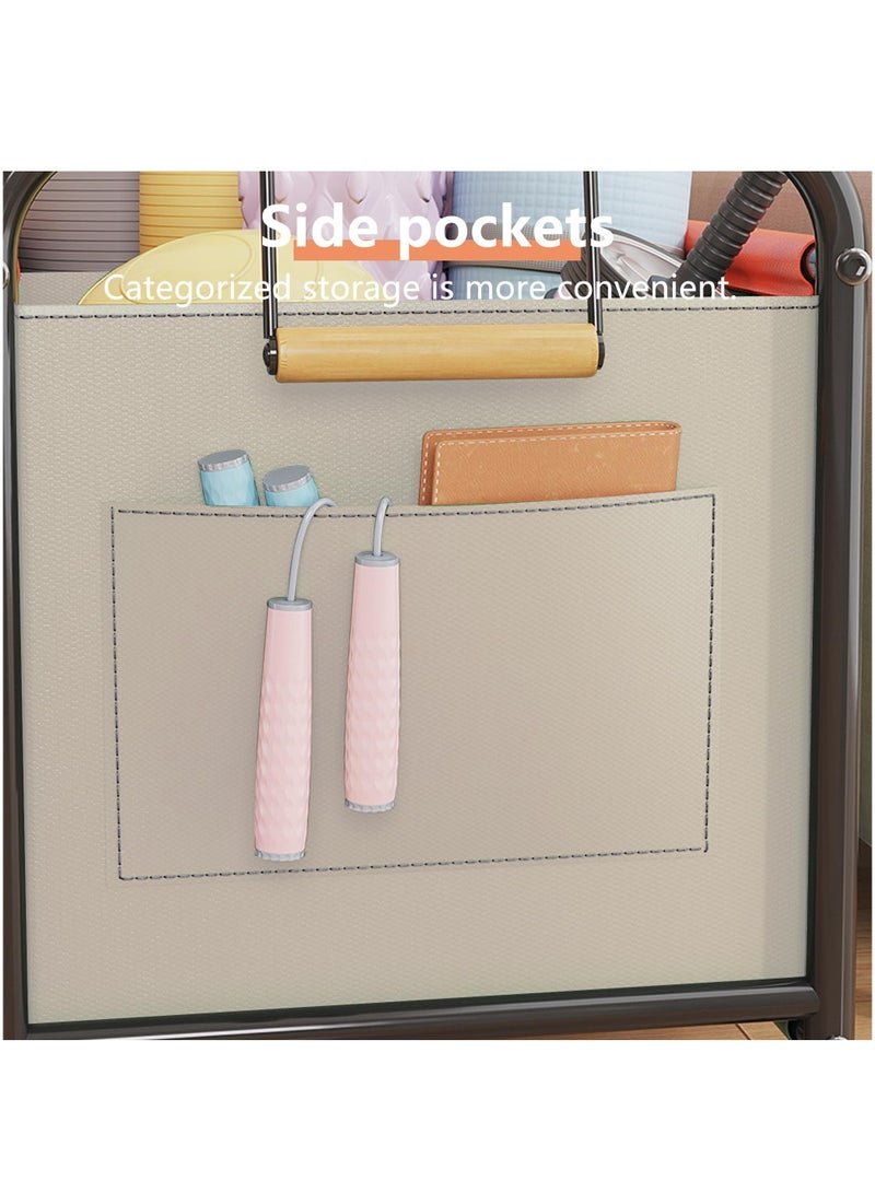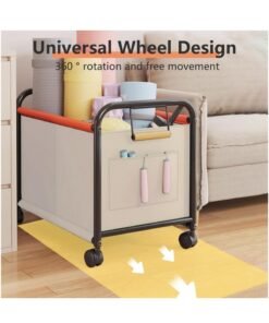 XiuWoo Large Size Children’s Toy Organizer With Wheels for Bedrooms,Playing Rooms, Study Rooms can Hold Toys, Books, Clothes, Snacks with 360° Steering Wheels Metal and Oxford Cloth toy Boxes,Beige 63.5*37*65cm