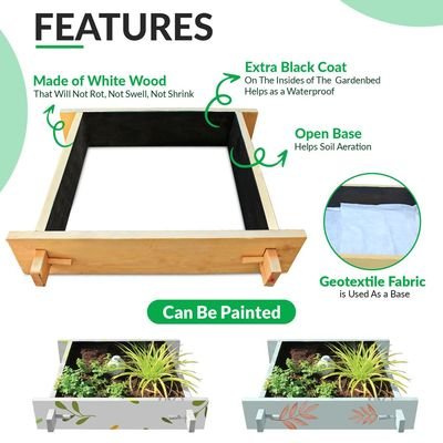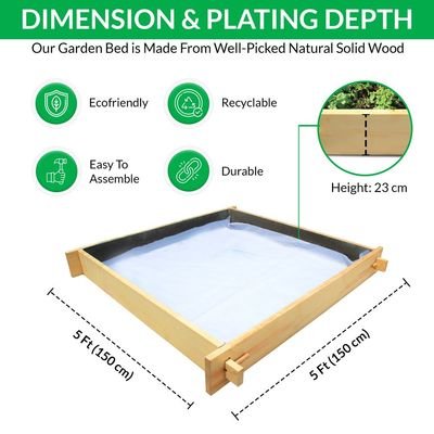 Yardlong Gardenbed – 5 feet x 5 feet x 23 cm, Wooden planter bed for home gardening, starter kit to grow flowers, herbs, vegetables, root veggies.