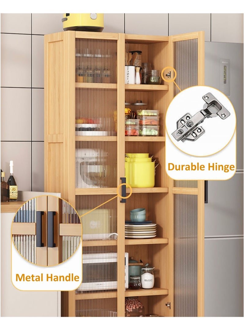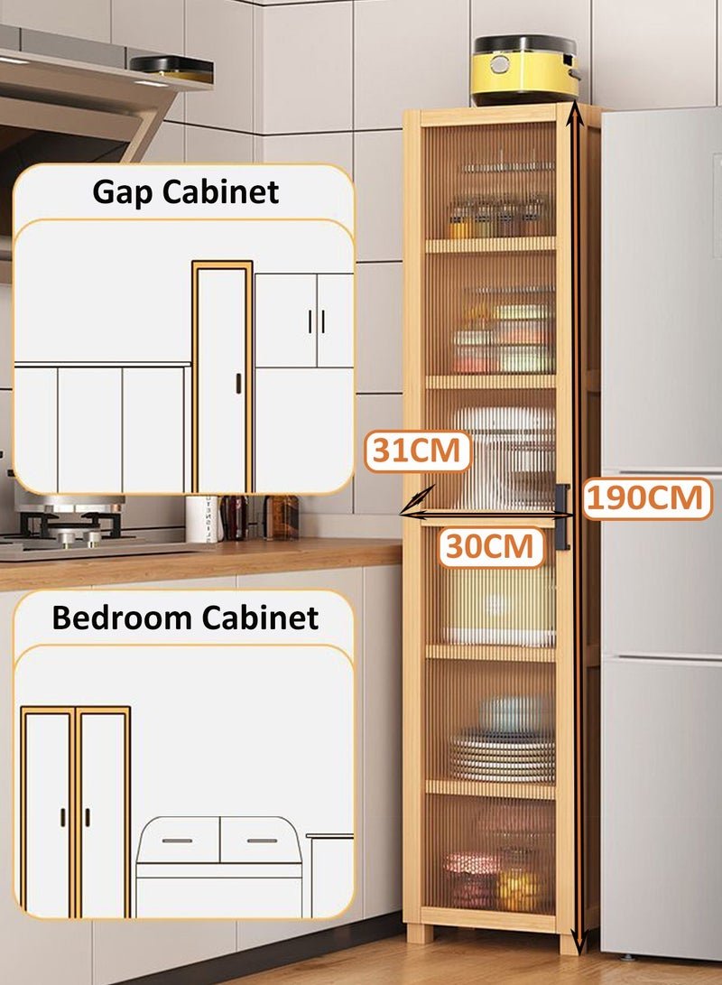YY-Recheer 6 Layers Kitchen Narrow Cabinet, Bamboo Sideboard Storage Cabinet with Door for Living Room, Cupboard Corner Cabinet for Living Room, Kitchen